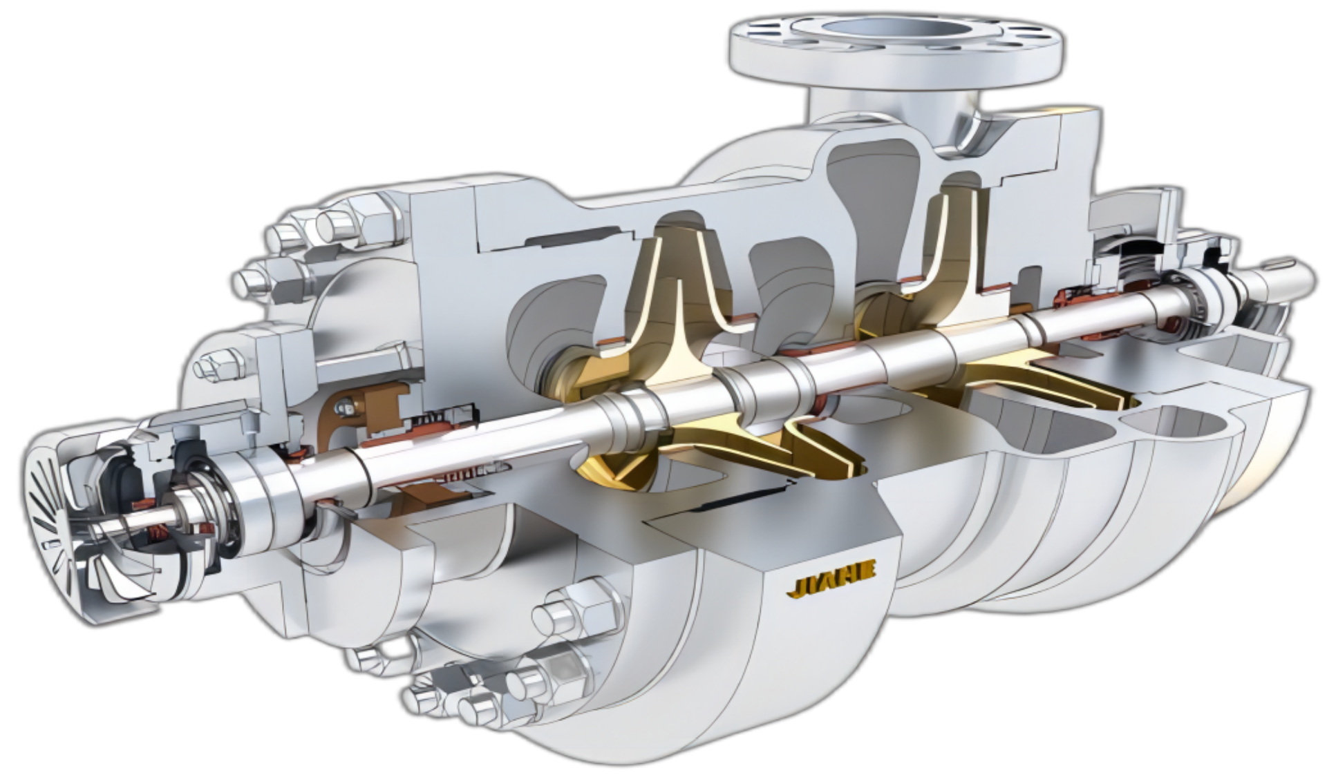 JHBB/JHBD 系列為兩級、徑向剖分兩端支承離心泵。符合 API610-11th 標(biāo)準(zhǔn)。JHBB 為首級單吸,JHBD 為 首級雙吸。進(jìn)出口法蘭尺寸滿足 ANSI 或 ISO 標(biāo)準(zhǔn)。密封腔的設(shè)計符合 ISO21049/API682 密封標(biāo)準(zhǔn) , 適合安裝 集裝式單封、有壓串封或無壓串封。沖洗、冷卻、加熱、急冷和緩沖液管路的連接符合 API 方案。